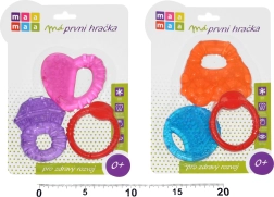 El set incluye dos mordedores y un práctico aro conector en el que pueden ensartarse. Los mordedores también desarrollan los sentidos y favorecen la coordinación ojo–mano y la motricidad gruesa. El tamaño de 6–9 cm es ideal para los más pequeños y para explorar el mundo con la boca de forma segura.