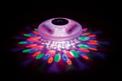 Gracias a su diseño bien pensado, ilumina suavemente un área de aproximadamente 2,43 m de ancho y 1,52 m de profundidad. Después de 60 minutos de inactividad se apaga automáticamente para ahorrar pilas. Su diámetro compacto de 14 cm y su bajo peso garantizan un manejo sencillo y un uso seguro en la piscina o en el jacuzzi.