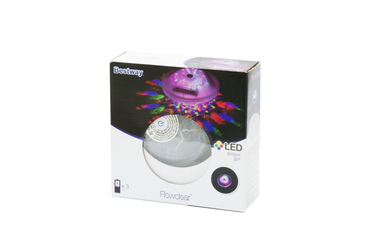 La luz LED flotante para piscina BESTWAY es un accesorio elegante y práctico para baños nocturnos, fiestas en el jardín y momentos románticos. Sin cables ni instalaciones complicadas, ofrece una iluminación llamativa de la superficie en 4 colores (rojo, azul, amarillo, verde) y con 7 modos dinámicos. Solo hay que insertar las pilas, colocarla en el agua y pulsar el botón.