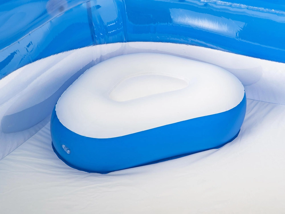 La piscina está equipada con paredes inflables suaves y reposacabezas para la máxima comodidad durante la relajación.
