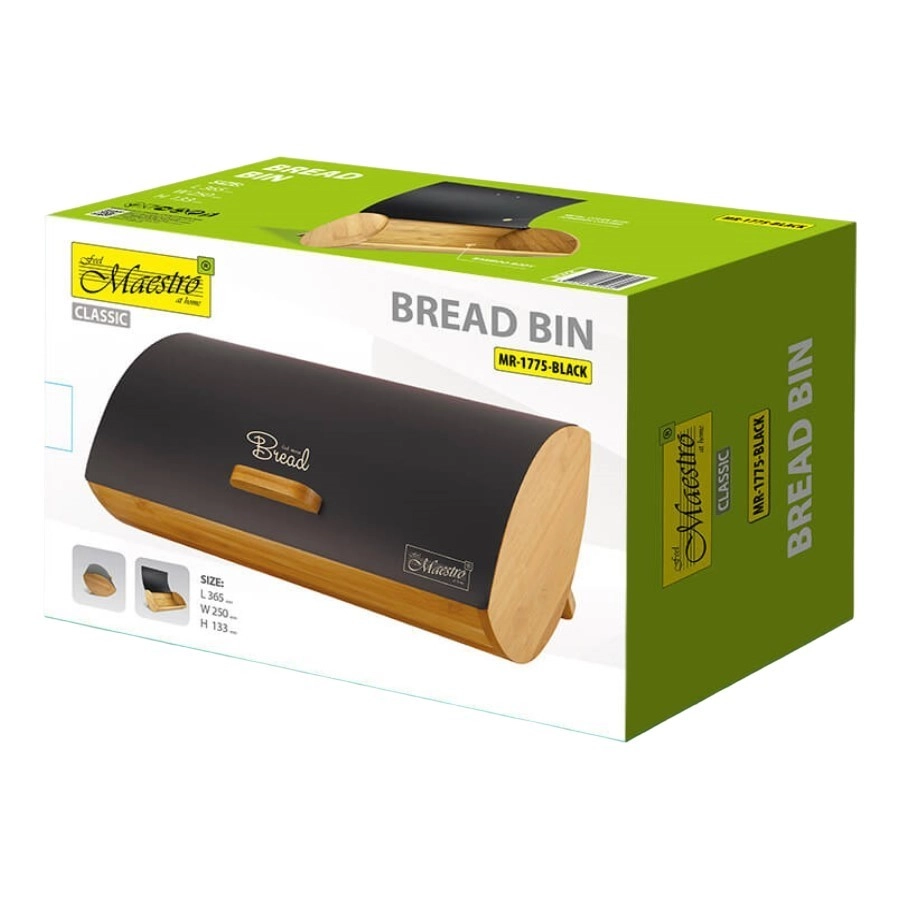 La panera Maestro es un complemento elegante y práctico para cualquier cocina moderna. El diseño negro, combinado con elementos de bambú natural, aporta sofisticación a la cocina, mientras que sus dimensiones compactas aseguran que no ocupe demasiado espacio.