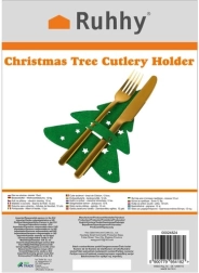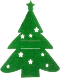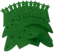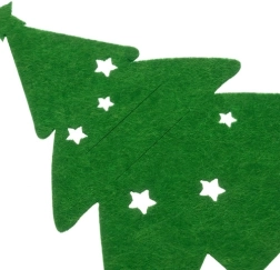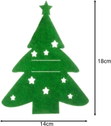 Aporta un toque mágico a tu mesa festiva con estas prácticas fundas para cubiertos en forma de arbolito. El juego incluye 12 piezas de fieltro de alta calidad y grosor en un vivo color verde. Gracias al material resistente, mantienen la forma, no se arrugan y el color no se desvanece incluso con un uso frecuente. Su tamaño universal alberga fácilmente tenedor, cuchillo y cuchara y complementa a la perfección cualquier mesa navideña.