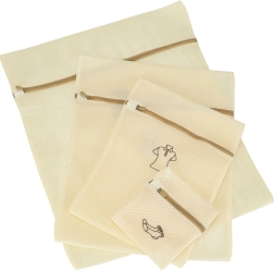 El set universal de bolsas para lavar es ideal para la protección de tejidos delicados en la lavadora. Cada bolsa tiene un tamaño distinto y un pictograma para una selección fácil, de modo que puedes lavar sin preocupación ropa interior, sujetadores, medias e incluso prendas de mayor tamaño. El tejido de malla resistente permite un lavado eficaz sin obstrucciones y protege las telas contra enganches y deformaciones.