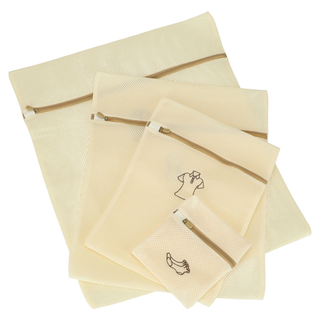 Protege tu ropa delicada con un práctico juego de 6 bolsas de malla para lavar. Los distintos tamaños se adaptan a sujetadores, calcetines, medias, camisetas y pantalones. La malla resistente garantiza un flujo libre de agua y detergentes, mientras que el cierre con cremallera mantiene la ropa segura en el interior para un lavado suave y eficaz.