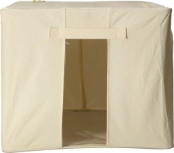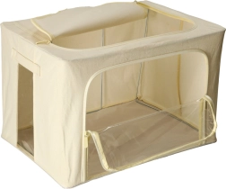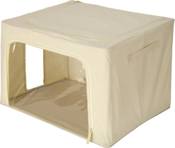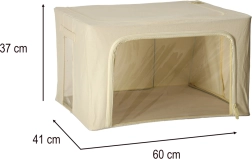 Esta espaciosa caja de almacenamiento es ideal para organizar textiles con claridad en el dormitorio, vestidor y habitación infantil. La capacidad de 100 litros alberga sábanas, mantas, toallas, juguetes y prendas de temporada, mientras que el poliéster de calidad resiste el uso diario.
