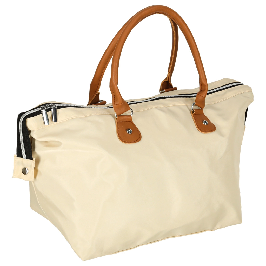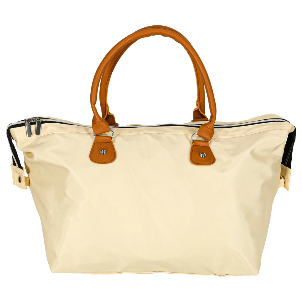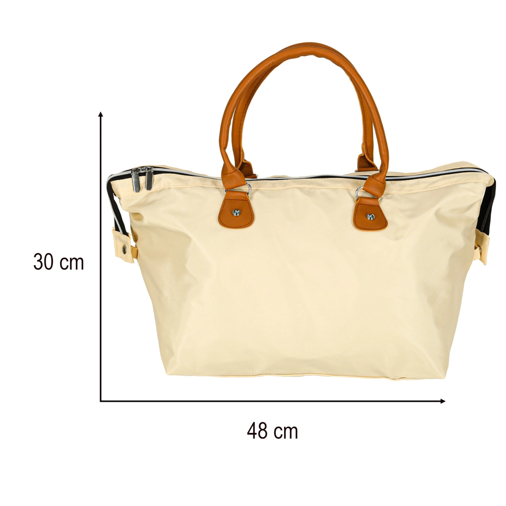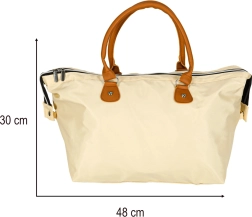 Gran compartimento principal con cremallera y un atemporal color beige para un uso versátil en el cochecito o como bolso de viaje.