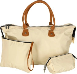 El paquete incluye 2 prácticos neceseres: uno más grande para pañales o cosméticos y otro más pequeño para objetos como chupetes o toallitas. Gracias a su diseño universal, la bolsa es ideal no solo para el cochecito, sino también como bolsa de viaje o de uso diario.