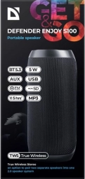 Disfruta de tus listas de reproducción favoritas con el altavoz portátil DEFENDER Enjoy S100 en elegante color negro. Gracias a la tecnología Bluetooth, conectas tu teléfono o tablet en segundos y escuchas sin cables innecesarios. El reproductor MP3 integrado y la radio FM amplían las opciones de entretenimiento en casa, de viaje y al aire libre.