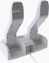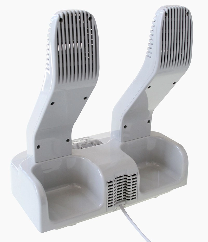 Dos brazos alargados con ventilación y un ventilador integrado aceleran el secado y distribuyen uniformemente el aire caliente por todo el calzado.