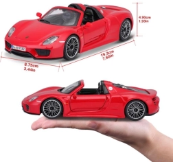 Disfruta de la belleza de un coche deportivo con el modelo Bburago Porsche 918 Spyder en tamaño 1:24. Este modelo está hecho de metal, lo que garantiza su larga vida útil y resistencia. Gracias a su elaboración precisa y a los magníficos detalles, es adecuado tanto para coleccionistas como para niños como juguete.