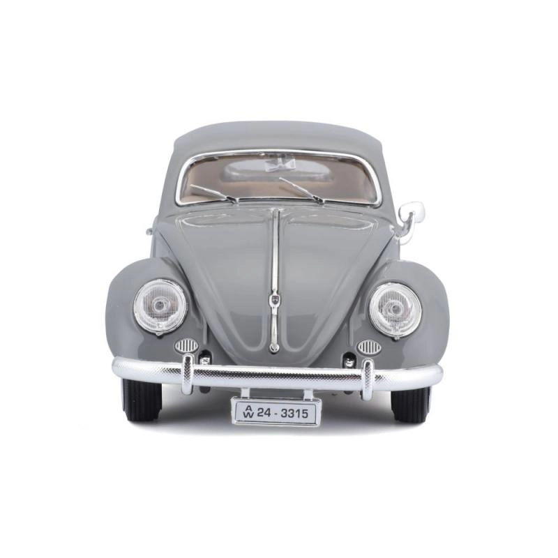 Carrocería metálica con finos detalles, parachoques cromados y proporciones fieles del icónico “Escarabajo” de 1955.