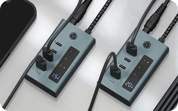 La pantalla digital integrada ofrece una vista inmediata de los puertos activos y la potencia actual en la salida de carga, para que tengas todo bajo control. La compatibilidad Plug & Play permite conectar y desconectar dispositivos sin configuraciones complicadas.