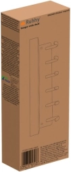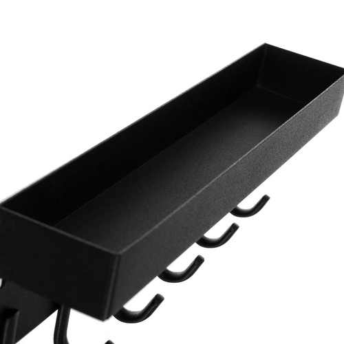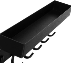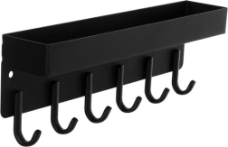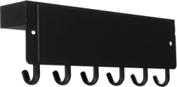 Con un ancho de 24,5 cm, alto de 8,5 cm y fondo de 5 cm, ahorra espacio y a la vez ofrece 6 ganchos y una repisa superior con borde.