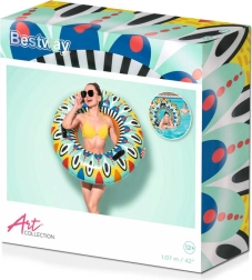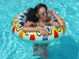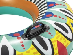 El aro de natación Fiesta devuelve el estilo y la alegría a la piscina gracias a sus gráficos vivos y colores llamativos. Con un diámetro de 107 cm y dos asas negras para un agarre fácil, garantiza seguridad para niños desde 12 años y adultos. La válvula de seguridad integrada permite inflar y desinflar con facilidad, haciendo que guardarlo sea pan comido.