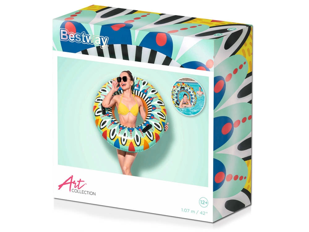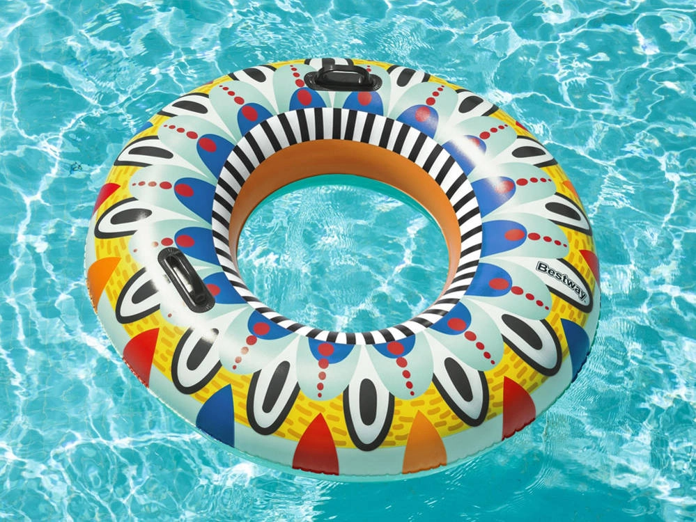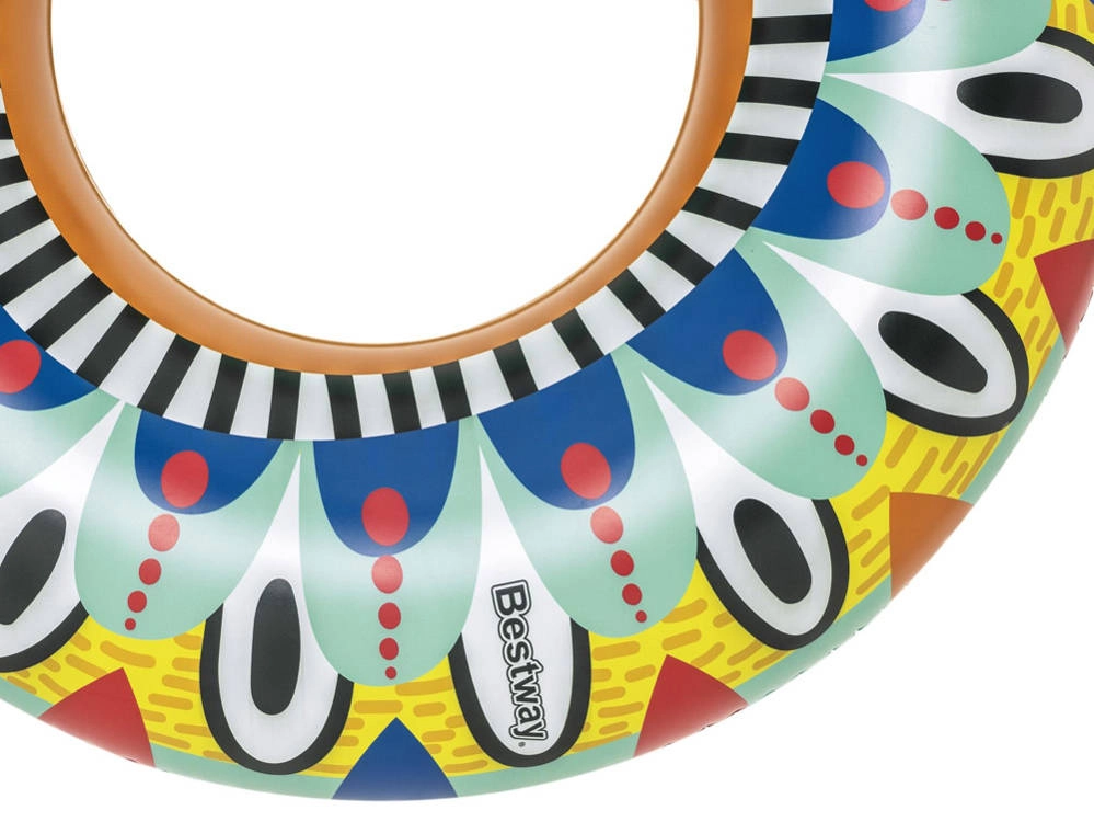 El aro de natación con gráfica de inspiración azteca aporta estilo a tu diversión acuática.