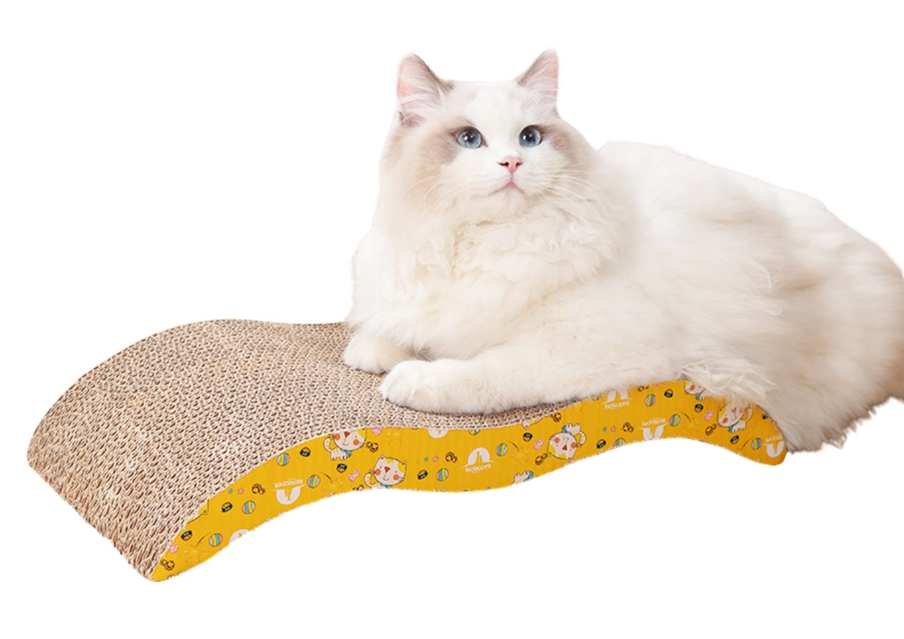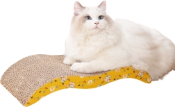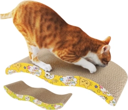 Esta tumbona rascadora de cartón con perfil ondulado satisface a la perfección las necesidades naturales de los gatos: ofrece una resistente superficie de rascado y, al mismo tiempo, una cómoda tumbona para holgazanear. El cartón natural invita al rascado, reduce el estrés y mantiene las uñas en forma, mientras que el alegre estampado amarillo agradará a los dueños.