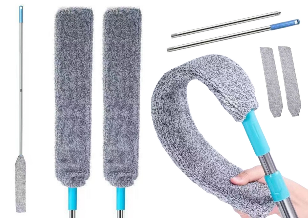 El mango telescópico permite ajustar la longitud según sea necesario, ideal para limpiar superficies bajas y altas, incluidos candelabros y armarios altos. Gracias a esta función, no necesitará escaleras ni mesas para alcanzar todos los lugares necesarios.