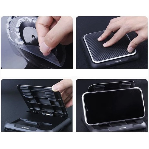El soporte para teléfono XTROBB combina una base adhesiva fuerte con una superficie antideslizante para una fijación estable y duradera en el salpicadero, la mesa o la encimera. Los materiales de calidad ABS, PC y silicona garantizan resistencia incluso frente a vibraciones y uso diario.