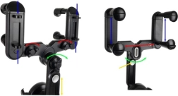 El agarre de cuatro puntos con tornillos y brazos con resorte fija firmemente el soporte al espejo e impide el desplazamiento incluso al conducir por superficies irregulares.