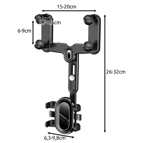 El soporte de teléfono XTROBB para montar en el espejo retrovisor está diseñado para un uso seguro y cómodo del smartphone durante la conducción. Los brazos con resorte y tornillos de mariposa permiten un anclaje rápido sin herramientas, mientras que el agarre de cuatro puntos y las almohadillas antideslizantes de espuma protegen el teléfono y el espejo contra arañazos. Su construcción compacta no limita la visibilidad y mantiene el teléfono firme incluso en caminos irregulares.