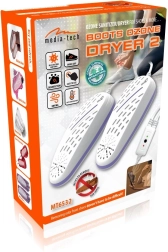MEDIA‑TECH Boots Ozone Dryer 2 es un secador de botas compacto y ligero con tecnología de desinfección por ozono, que elimina rápidamente la humedad y los olores indeseados. El ozono, como potente agente oxidante, reduce eficazmente la proliferación de bacterias y hongos en el interior del calzado y mejora la higiene de los pies.