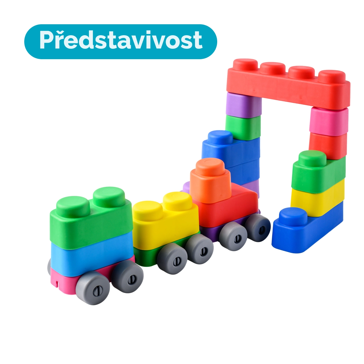 Descubre posibilidades infinitas de diversión con este juego de construcción blando Far Far Land, que incluye 25 bloques de colores y 16 ruedas, todo fabricado con un material seguro.