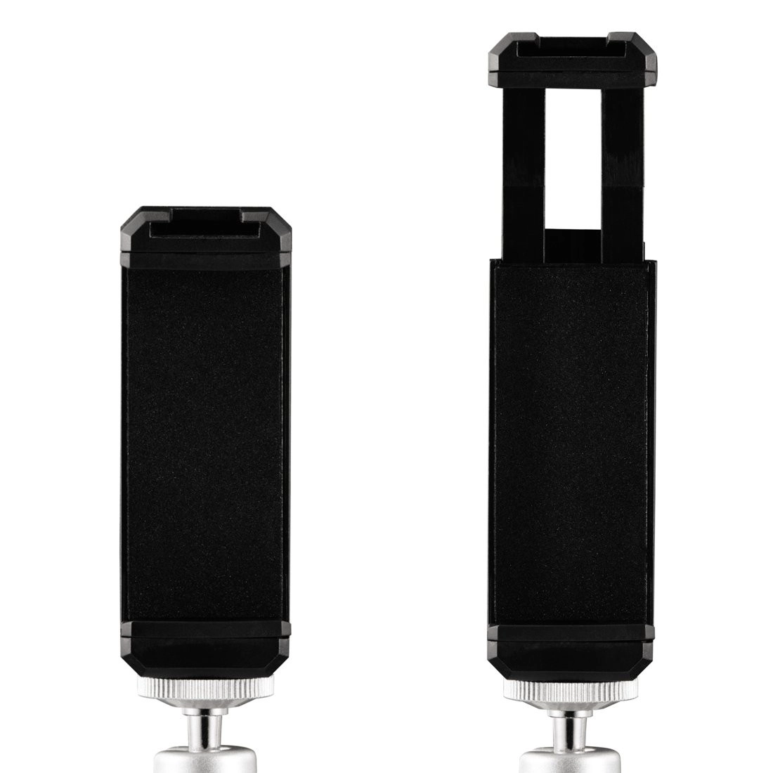 El trípode incluye un sistema 2en1 que funciona como soporte para smartphone y con rosca de 1/4'' para cámaras, lo que aumenta su versatilidad.