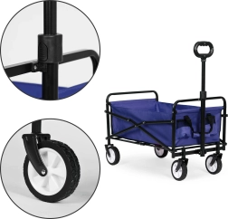 Este práctico carrito es una excelente solución para trabajos de jardinería y transporte de la compra o como ayudante en la playa. Gracias a su asa cómoda, diseño plegable y sólida estructura metálica, es ideal para cualquier situación y facilita el transporte de diversos objetos.