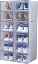 Práctico estante modular con 5 compartimentos para un almacenamiento ordenado de calzado y accesorios. Ofrece montaje rápido gracias al sistema de encaje, diseño transparente y elegante y configuración variable para cualquier espacio. Estructura ligera pero resistente de paneles de PP y armazón metálico, fácil de limpiar, y cada compartimento cuenta con puerta con cierre para evitar aperturas accidentales.