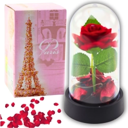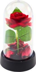 La cúpula transparente protege la rosa del polvo y a la vez la exhibe de forma llamativa desde todos los ángulos. La base de plástico estable garantiza una colocación segura. La alimentación por pilas permite un manejo fácil sin cables, para que puedas colocar la decoración donde quieras.