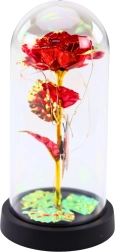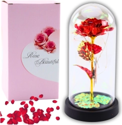 La rosa eterna en cúpula de vidrio con iluminación LED es un obsequio elegante y simbólico. Simboliza el amor y los sentimientos que nunca se desvanecen. La rosa mantiene su belleza para siempre sin requerir ningún cuidado. La delicada luz LED realza la belleza de la rosa y crea una atmósfera cálida, ideal para fines decorativos o momentos románticos. La elegante cúpula de vidrio protege la rosa y permite disfrutar de su encanto desde cualquier ángulo. La base de plástico firme y estable garantiza la seguridad y la estética del regalo.