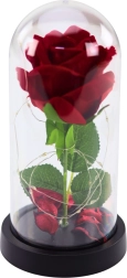 La elegante cúpula protege la rosa y permite admirarla desde todos los ángulos. La base está hecha de material plástico, que proporciona solidez y estabilidad.
