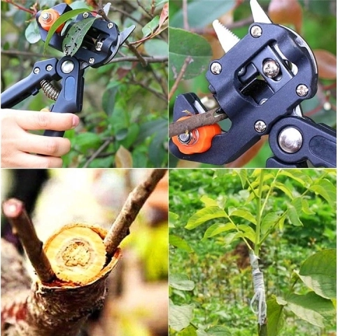Herramienta de injerto diseñada para cortes y ajustes precisos en árboles y arbustos. Gracias a sus cuchillas intercambiables y mangos ergonómicos, garantiza un uso cómodo y seguro.