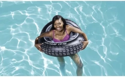 El aro tiene el aspecto fiel de un neumático de automóvil, que atrae tanto a niños como a adultos y añade un toque divertido a cualquier piscina.