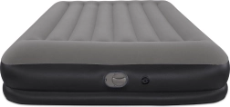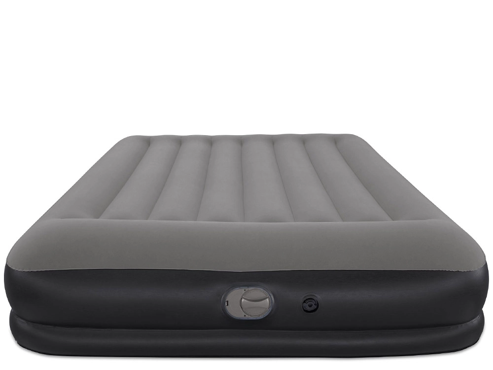 La bomba USB integrada llena la cama en 5–6 minutos y es compatible con adaptadores AC/DC y powerbanks, ideal cuando estás de viaje. La almohada integrada y la agradable superficie acanalada aumentan el confort al dormir; el tamaño de 152 × 203 cm aloja cómodamente a dos adultos.