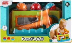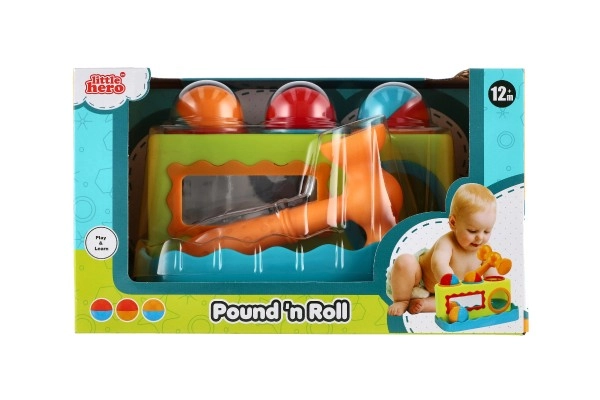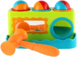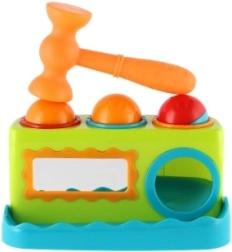 El colorido banco de golpear para los más pequeños desarrolla la motricidad fina, la coordinación ojo-mano y la curiosidad natural. Con un martillito ligero, los niños golpean tres pelotas de colores en los orificios y observan cómo caen. El espejo frontal añade un toque lúdico, motiva a repetir y favorece la percepción de la propia imagen. Juguete didáctico ideal a partir de 12 meses.