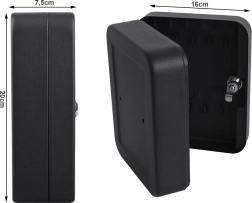 El armario está diseñado para montaje en pared, ahorra espacio y mantiene las llaves siempre al alcance. En el paquete encontrarás también números autoadhesivos, llaveros de colores, material de montaje y un juego de dos llaves para la cerradura: todo lo necesario para ponerlo en funcionamiento de inmediato.