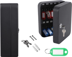 Mantén tus llaves organizadas y seguras con este robusto llavero metálico para hasta 48 llaves. Ofrece cierre con llave, ganchos bien dispuestos en dos filas y etiquetas de colores para una identificación rápida. Ideal para oficinas, talleres, hoteles, escuelas y hogares.