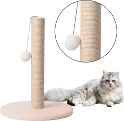 Práctico rascador con poste de 40 cm de altura y base de 30 cm que ofrece a los gatos un lugar seguro para rascar, jugar y liberar energía. El poste envuelto en sisal ayuda a mantener las uñas sanas y protege tus muebles de los daños. El color beige neutro combina fácilmente con cualquier interior.