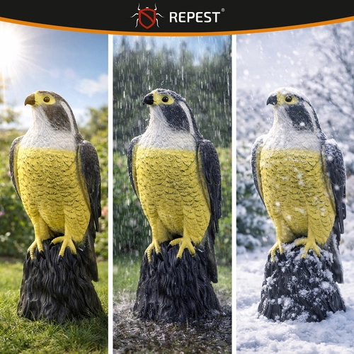 La maqueta realista de halcón es una solución eficaz y segura para proteger espacios exteriores e interiores. Su aspecto natural de depredador refuerza el miedo instintivo de las aves pequeñas y ayuda a proteger cosechas, fachadas o balcones sin químicos ni ruido. También es adecuada como ahuyentador visual para pequeños roedores.