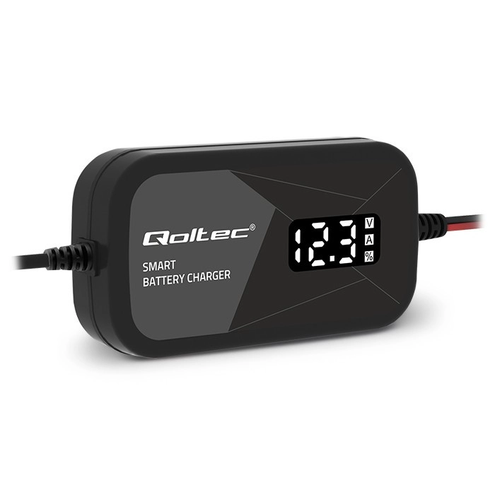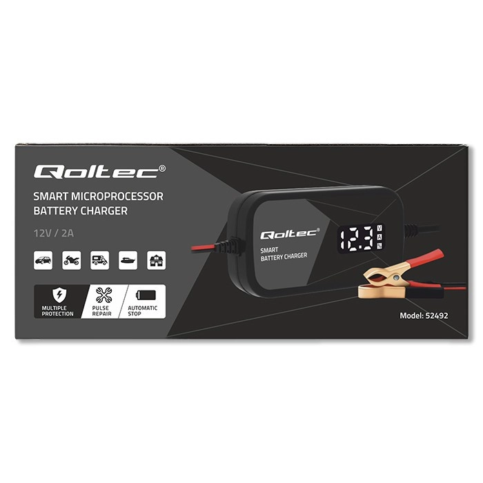 Este cargador inteligente de 12V con corriente de 2A es ideal para baterías de 2–20Ah en automóviles, motocicletas, embarcaciones, cortacéspedes o cuatriciclos. El microprocesador ajusta automáticamente el voltaje y la corriente al estado de la batería, evita la sobrecarga y, tras la carga completa, pasa al modo de mantenimiento. La gran pantalla LED/LCD muestra secuencialmente el voltaje (V), la corriente (A) y el estado de carga (%) para un seguimiento sencillo.