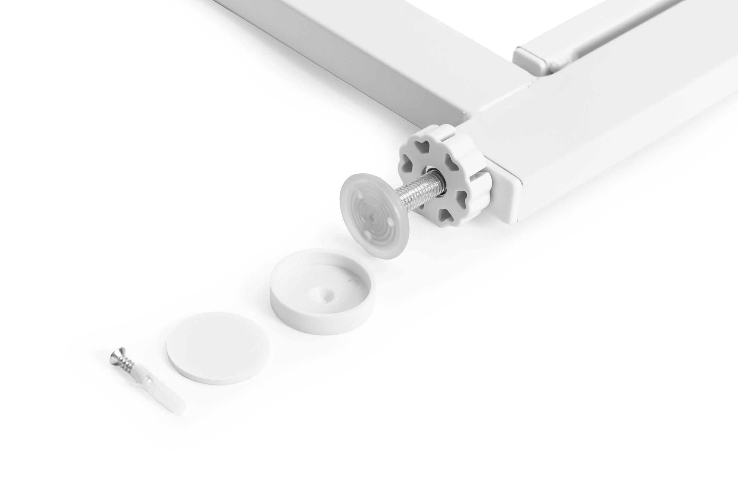 La barrera destaca por su fácil instalación gracias al sistema de montaje a presión, que no requiere taladrar. Con las almohadillas de protección evitarás daños en las superficies de paredes y suelos. Si prefieres un montaje fijo, la barrera incluye soportes de montaje especiales para una fijación permanente.