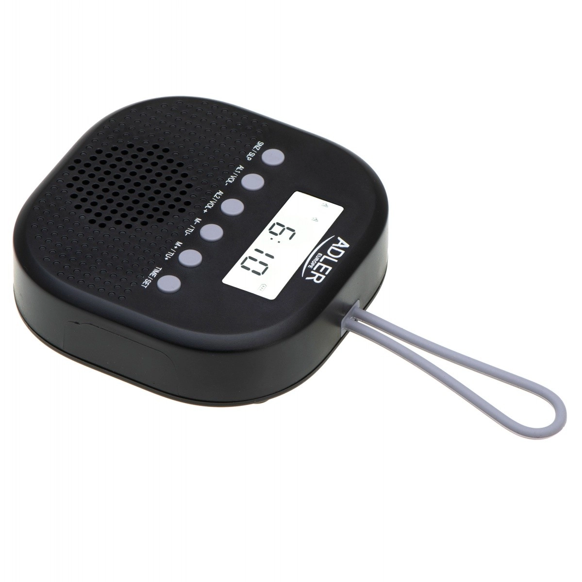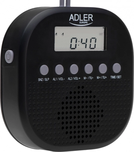 La radio ADLER AD 1912, compacta y elegante, con certificación IPX4, es ideal para la ducha, excursiones y uso diario. Ofrece radio FM, hora digital clara, dos alarmas independientes, práctica función de repetición/temporizador de 10–90 min y alimentación por baterías para máxima movilidad. Gracias a su correa de silicona elástica, puedes colgarla fácilmente donde la necesites.