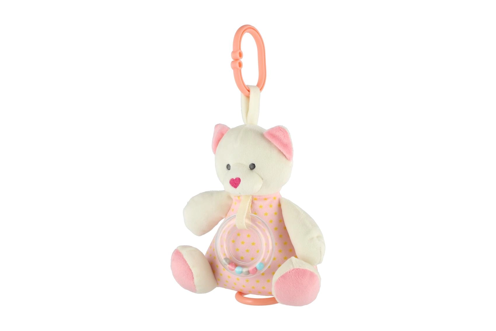 Este osito suave está diseñado para calmar al bebé y acompañarlo a la hora de dormir. El agradable peluche, los colores delicados y los estímulos sonoros discretos lo convierten en el primer juguete ideal y en un compañero perfecto para abrazar. Es ligero, fácil de agarrar y, gracias a su elaboración cuidada, favorece el desarrollo sensorial del niño.