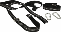 El sistema de montaje sencillo lleva solo unos minutos y no requiere herramientas especiales. ¡Basta con envolver la correa alrededor de la superficie elegida, fijar el mosquetón y listo!