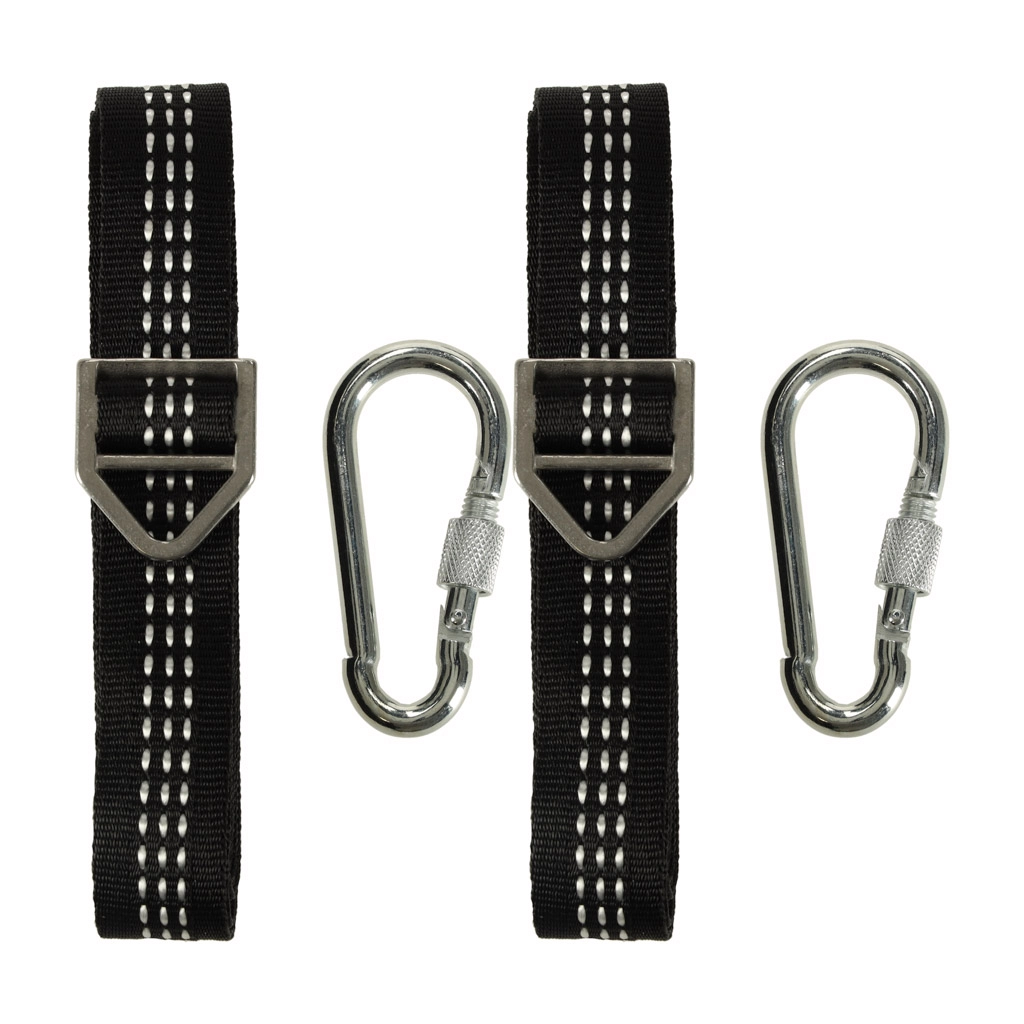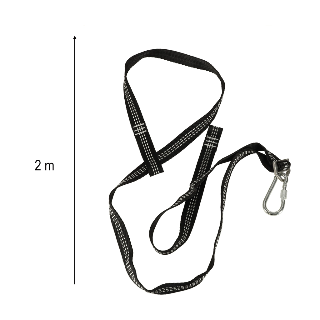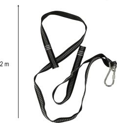 Dos correas de 2 metros de poliéster resistente garantizan estabilidad y una capacidad de carga de hasta 300 kg.