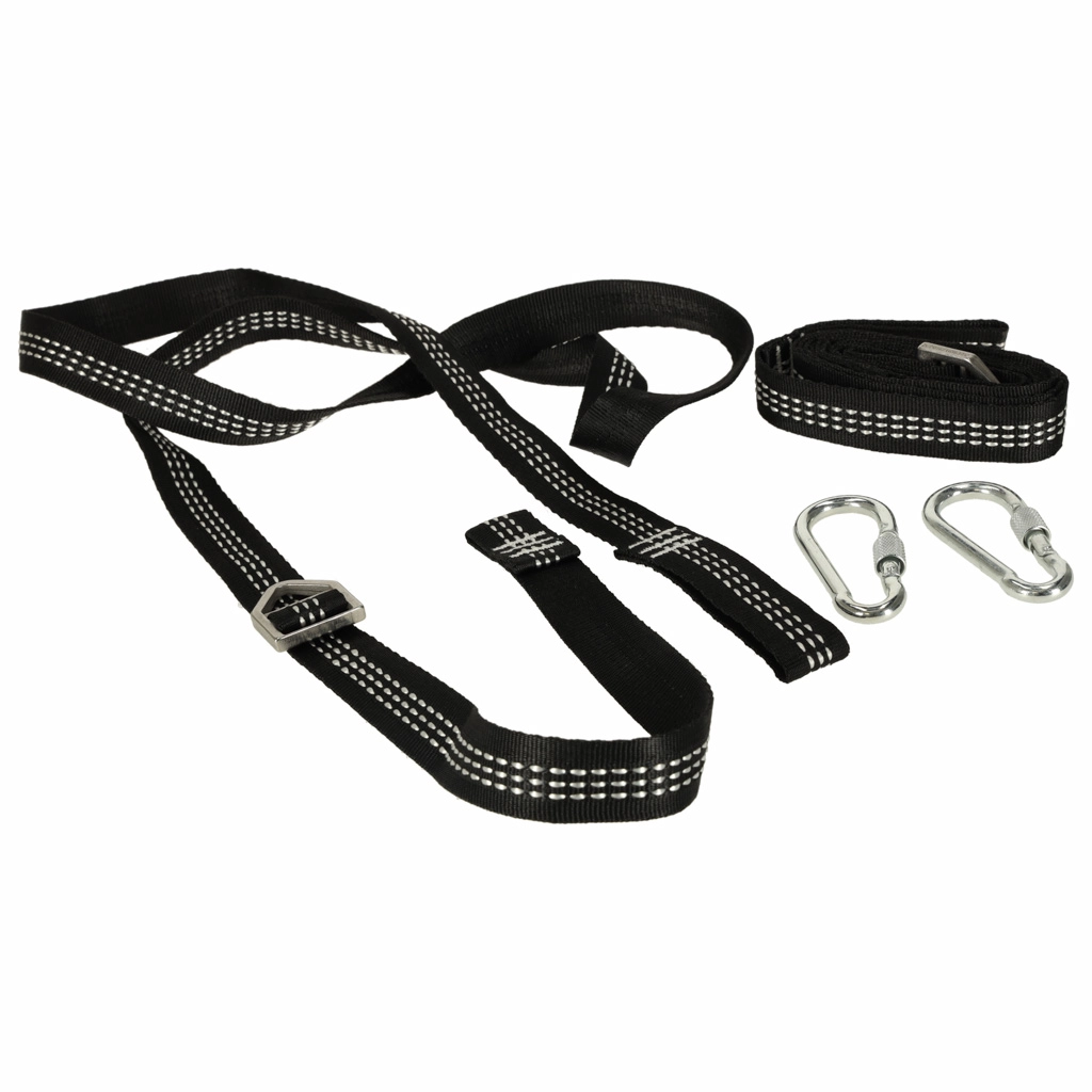 El juego de montaje ideal para todos los amantes del balanceo, ya sea en el jardín, la terraza o en interiores. El set incluye dos correas de 2 metros de alta resistencia y dos mosquetones con una capacidad máxima de carga de 300 kg. Gracias a ello se garantiza estabilidad y seguridad incluso con un uso intensivo.