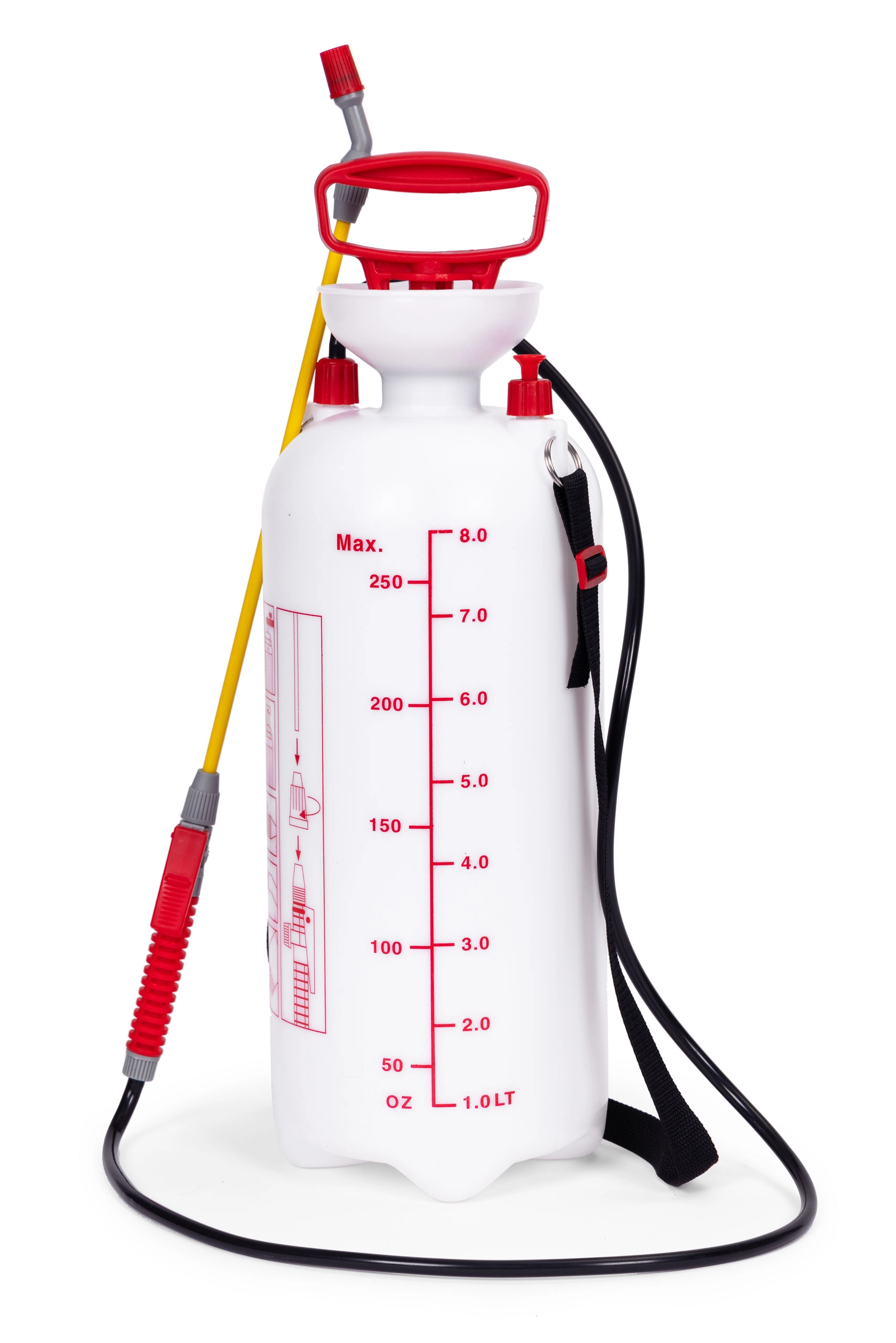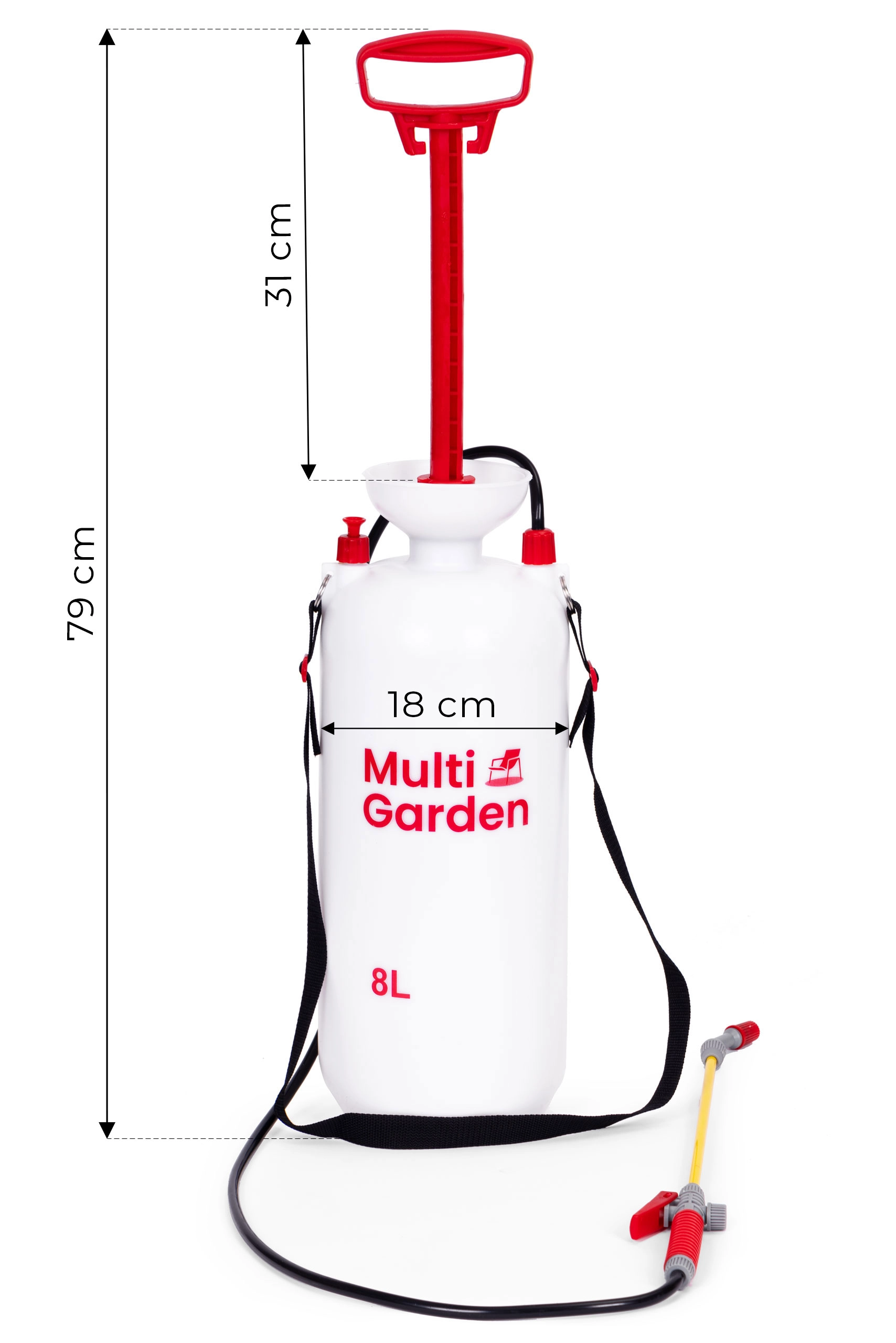 La resistente lanza de fibra de vidrio, la bomba de pistón para un rápido presurizado y la válvula de seguridad aumentan la comodidad y la seguridad durante el trabajo. El cuello ancho facilita el llenado, la escala de medición garantiza una dosificación precisa y el bloqueo del gatillo asegura una pulverización continua sin fatiga en la mano.