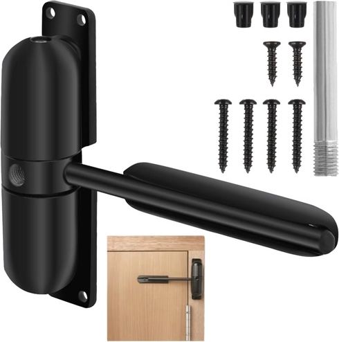 Cierre automático de puertas Malatec garantiza un cierre de puertas suave, silencioso y seguro con una capacidad de carga máxima de 60 kg. Este cierre automático metálico negro es ideal para varios tipos de puertas y ofrece una instalación sencilla sin necesidad de compras adicionales.