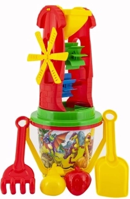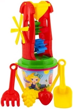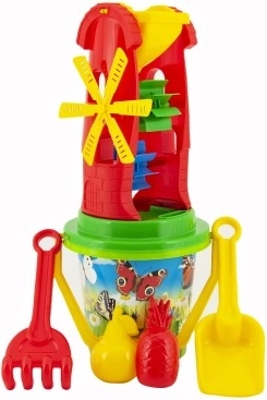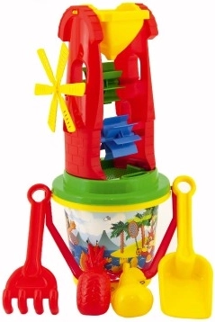 Este colorido juego de arena es ideal para vacaciones, excursiones y diversión diaria en el parque. Los niños pueden verter arena en el molino y observar las paletas giratorias, construir castillos y crear formas con los moldes. La fabricación duradera en plástico de calidad garantiza una larga vida útil y un juego seguro.